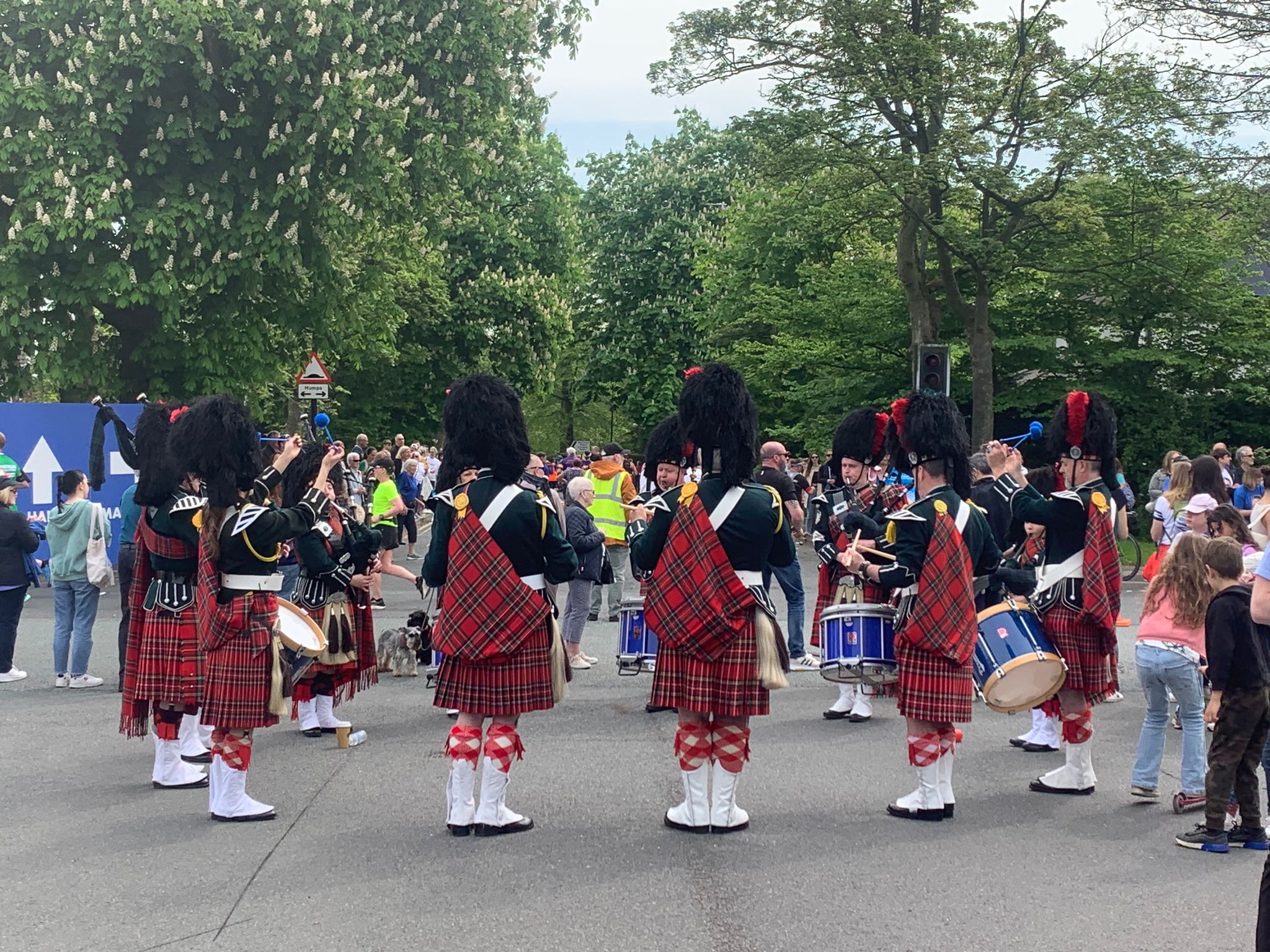 We will be playing on the central grass verge opposite Boddington Avenue, LS16, from around 9.30 in the morning